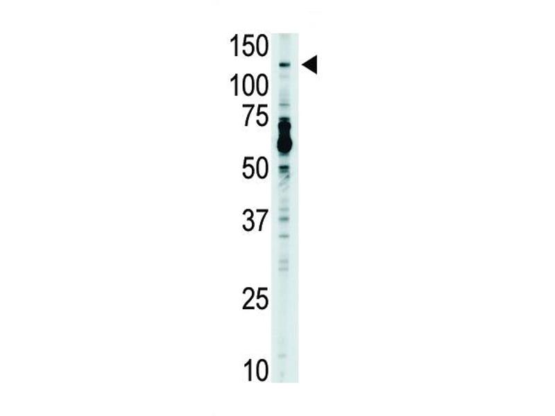 This TLR7 antibody is generated from rabbits immunized with a KLH conjugated synthetic peptide between 98-128 amino acids from the N-terminal region of human TLR7.