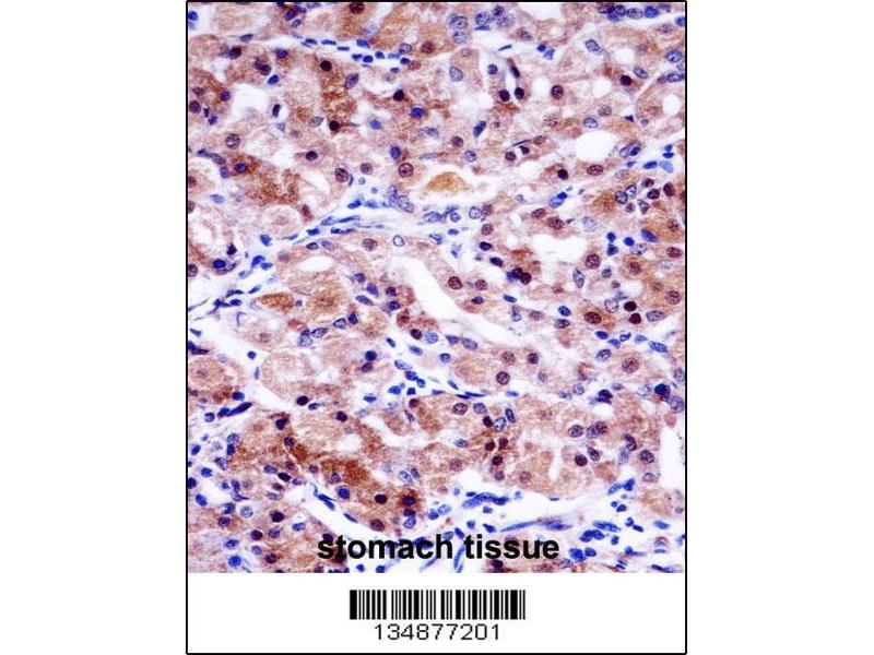 This USP43 antibody is generated from rabbits immunized with a KLH conjugated synthetic peptide between 900-928 amino acids from the C-terminal region of human USP43.