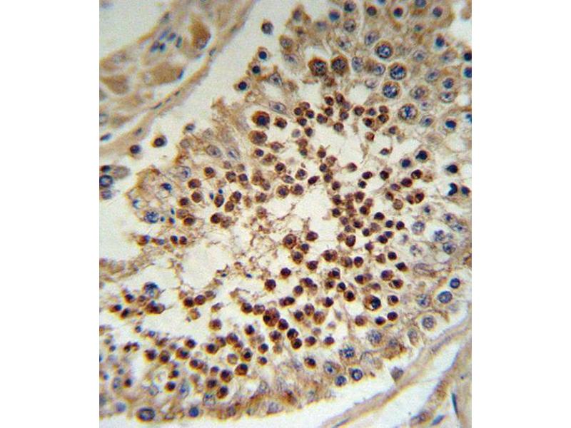 This KLF5 antibody is generated from rabbits immunized with a KLH conjugated synthetic peptide between 341-370 amino acids from the C-terminal region of human KLF5.