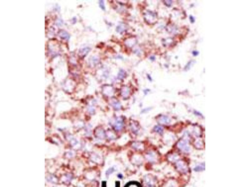 This USP4 antibody is generated from rabbits immunized with a KLH conjugated synthetic peptide between 903-933 amino acids from the C-terminal region of human USP4.