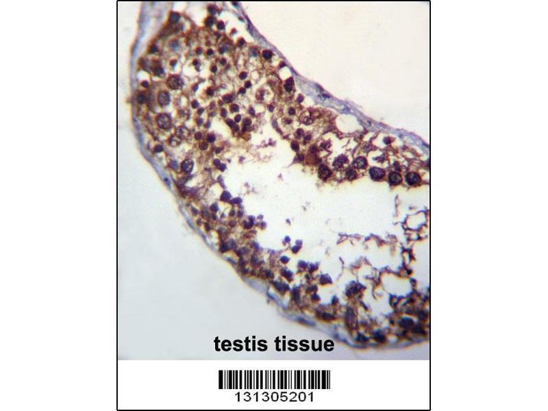 This POMT1 antibody is generated from rabbits immunized with a KLH conjugated synthetic peptide between 706-735 amino acids from the C-terminal region of human POMT1.
