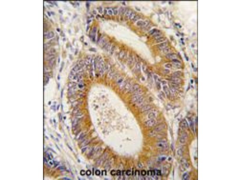 This YARS2 antibody is generated from rabbits immunized with a KLH conjugated synthetic peptide between 43-71 amino acids from the N-terminal region of human YARS2.