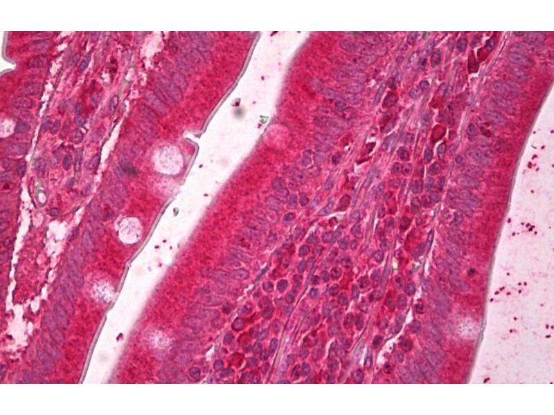 Immunohistochemistry: Paraffin embedded Human Small Intestine. Recommended concentration: 5 μg/mL.