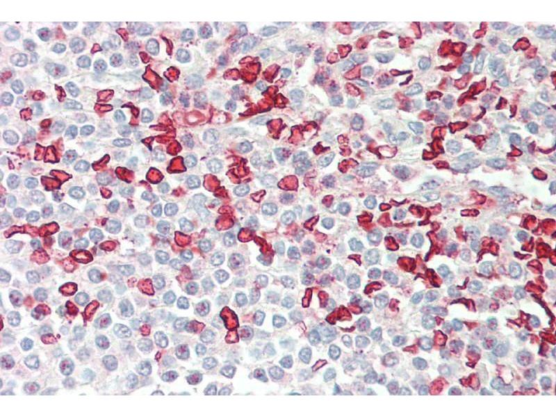 Immunohistochemistry: Paraffin embedded Human Spleen. Recommended concentration: 5 μg/mL.