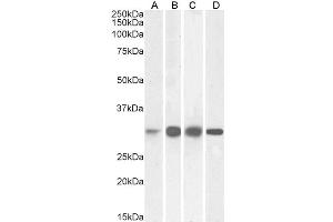 Western Blot: Approx 30 kDa band observed in Human, Mouse, Rat and Pig Liver lysates (calculated MW of 32.7 kDa according to Human NP_000212.1, Mouse NP_032465.2, Rat NP_114061.1 and of 32.6 kDa according to Pig XP_003125348.1). Recommended concentration: 0