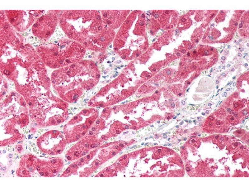 Immunohistochemistry: Paraffin embedded Human Kidney. Recommended concentration: 5 μg/mL.