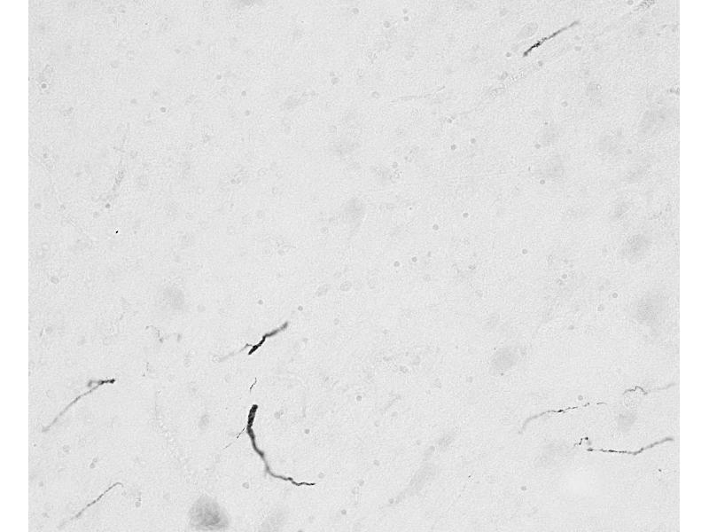 Immunohistochemistry: Cryosection of immersion-fixed (1 % PFA/0.5 % methanol) Human Hypothalamus. Optimal dilution: 1:5000. *Vibratome prepared sample for optimal labelling.