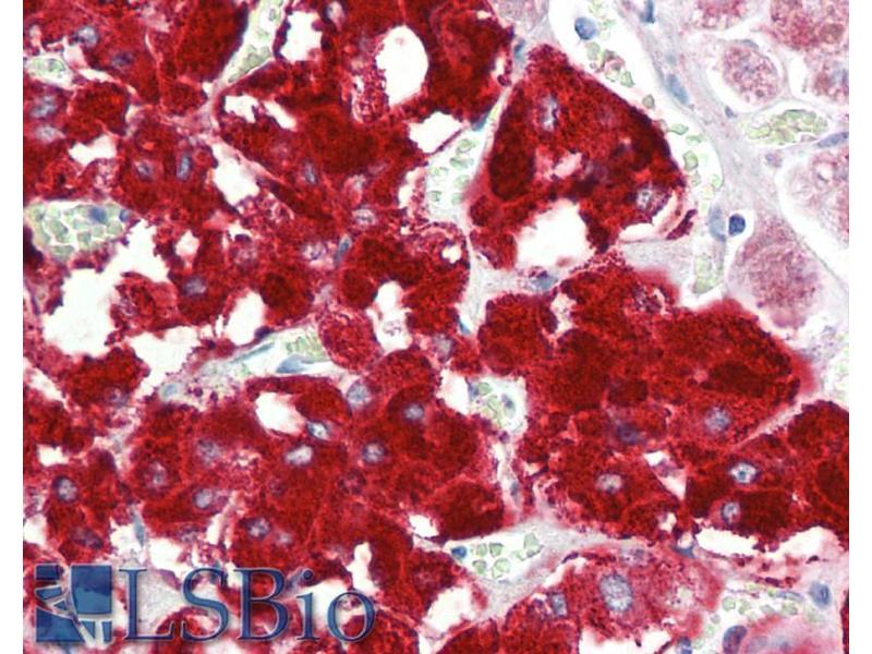 Immunohistochemistry: Paraffin embedded Human Adrenal Gland. Recommended concentration: 5 μg/mL.