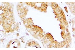 Immunohistochemistry: In paraffin embedded Human Kidney shows membrane staining in CT. Recommended concentration, 2-4 μg/mL.