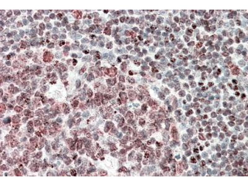 Immunohistochemistry: In paraffin embedded Human Tonsil shows staining in a selection of cells mostly outside the germinal centre. Recommended concentration: 4-8 μg/mL.