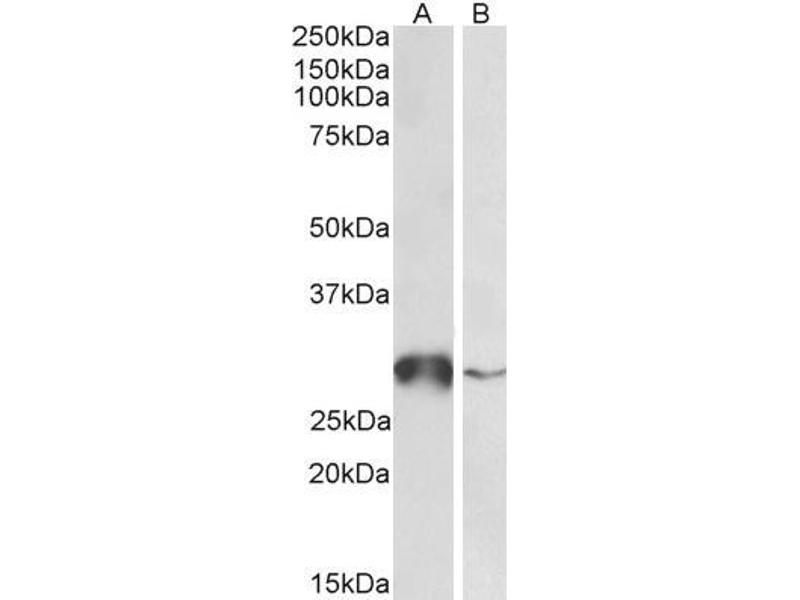 Western Blot: Approx 28 kDa band observed in Human Liver and in Peripheral Blood Mononucleocytes lysates (calculated MW of 27.6 kDa according to NP_004823.1). Recommended concentration: 0.5-2 μg/mL.