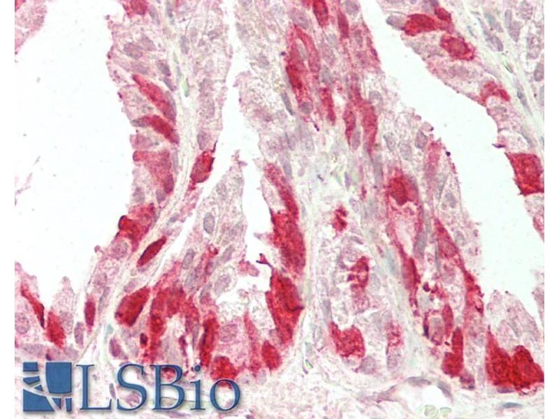 Immunohistochemistry: Paraffin embedded Human Prostate. Recommended concentration: 5 μg/mL.