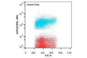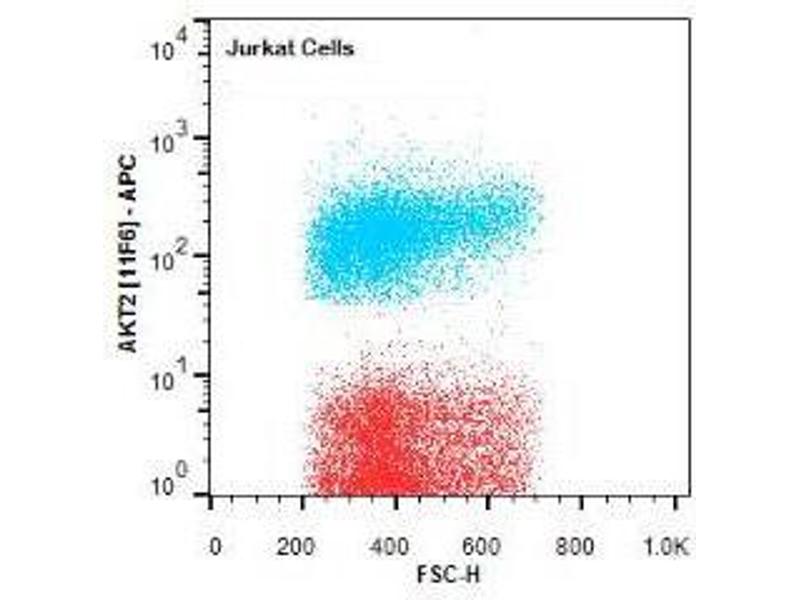 Application Note: Anti-AKT2 APC Antibody is tested for Flow Cytometry. This antibody is suitable for ELISA, immunohistochemistry, and western blotting. Expect a band approximately 56 kDa in size corresponding to AKT2 protein by western blotting in the appropriate cell lysate or extract. This monoclonal antibody reacts with human AKT. Specific conditions for reactivity should be optimized by the end user. For immunohistochemistry we recommend the use of fresh frozen tissues. Attempts at staining paraffin-embedded formalin fixed tissues were negative. No pre-treatment of sample is required.