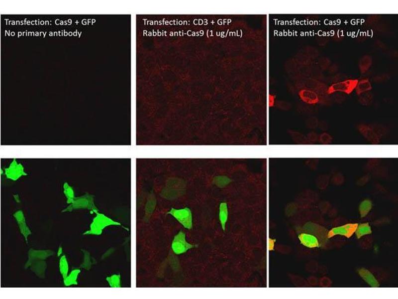 Application Note: This affinity purified antibody has been tested for use in ELISA, Immunofluorescence, and Western blotting. Specific conditions for reactivity should be optimized by the end user. Expect a band ~158 kDa in size corresponding to Cas-9 protein by western blotting in the appropriate cell lysate or extract.