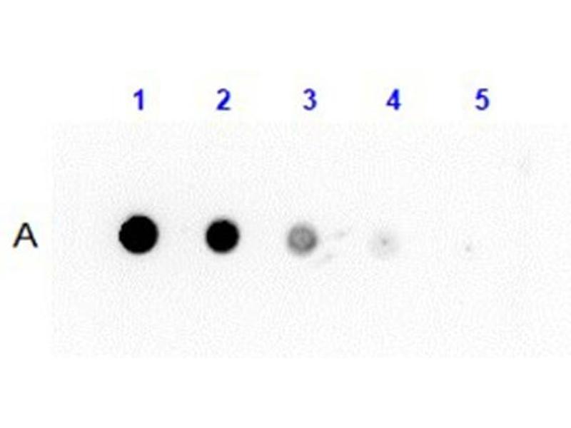 Application Note: Anti-Protein G Peroxidase Conjugated Antibody has been tested by dot blot and is suitable to be assayed against 1.0 μg of Protein G [Streptococcus species] in a standard capture ELISA using ABTS (2,2'-azino-bis-[3-ethylbenthiazoline-6-sulfonic acid]) code # ABTS-100 as a substrate for 30 minutes at room temperature. A working dilution of 1:20,000 to 1:100,000 of the reconstitution concentration is suggested for this product.
