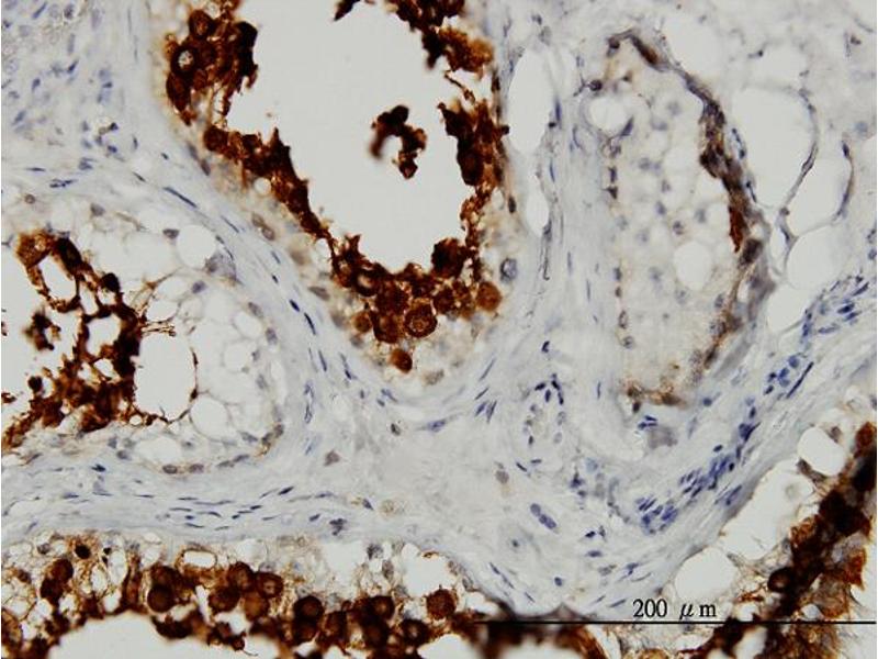 Dieser Maus Monoklonal Antikörper detektiert spezifisch ART3 in WB, ELISA und IHC (p). Es zeigt Reaktivität gegenüber Proben von Human.Es wurde in 1 Publikation zitiert.