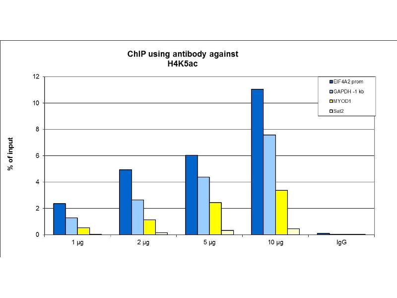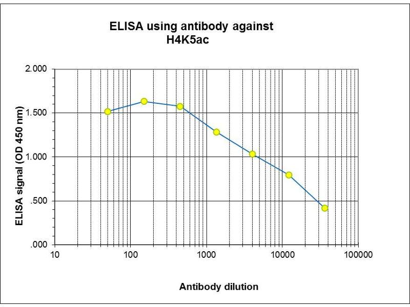 - Polyclonal antibody raised in rabbit against the region of histone H4 containing the acetylated lysine 5 (H4K5ac), using a KLH-conjugated synthetic peptide