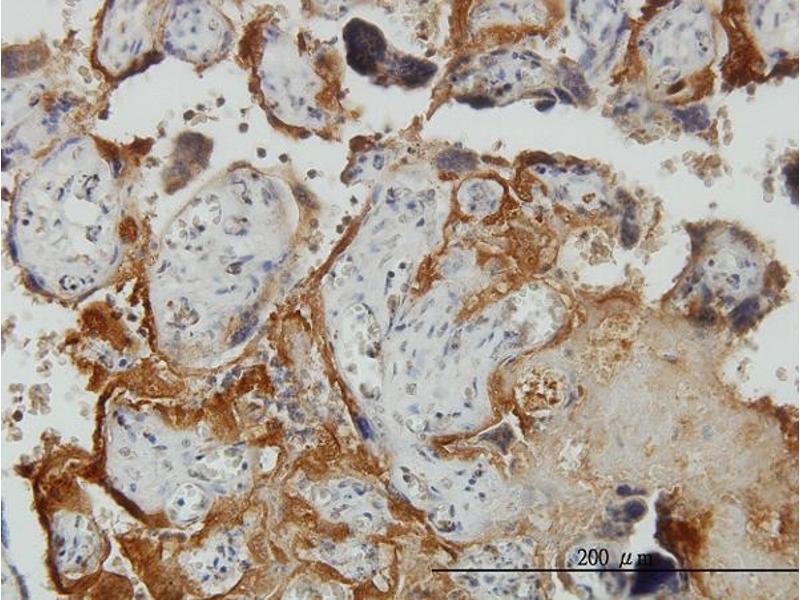 Der Maus Monoklonal anti-PLGLB2 Antikörper (Klon 3E6) (ABIN562275) detektiert spezifisch PLGLB2 in ELISA, WB, IF und IHC (p).