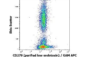 The mouse monoclonal antibody EH12.2H7 recognizes an extracellular epitope of CD279 / PD-1 (programmed cell death 1), a 55 kDa type I transmembrane protein expressed above all during T cell development, on activated T cells, activated B cells, and activated monocytes.