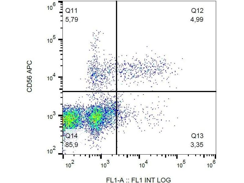 The mouse monoclonal antibody TB01 recognizes CD57, a carbohydrate extracellular antigen present mainly on NK cells, NK T cells, and in neural tissue.
