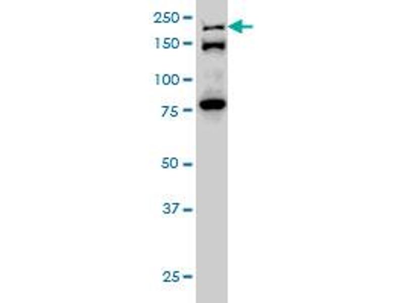 Der Maus Monoklonal anti-Separase Antikörper (Klon 6H6) (ABIN564183) detektiert spezifisch Separase in ELISA, WB und IHC (p).