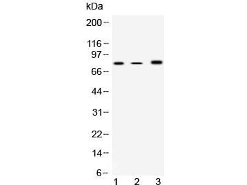 Der Kaninchen Polyklonal anti-12-Lipoxygenase Antikörper wird verwendet zum Nachweis von 12-Lipoxygenase in Proben von Human, Maus und Ratte. Er wurde validiert für WB.