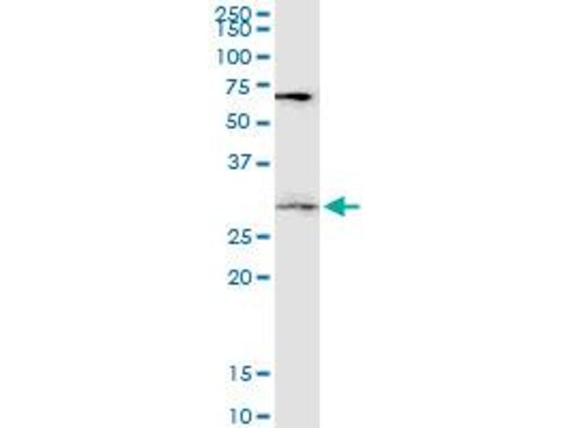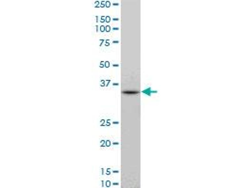DKK1 (NP_036374, 81 a.a. ~ 180 a.a) partial recombinant protein with GST tag. MW of the GST tag alone is 26 KDa.