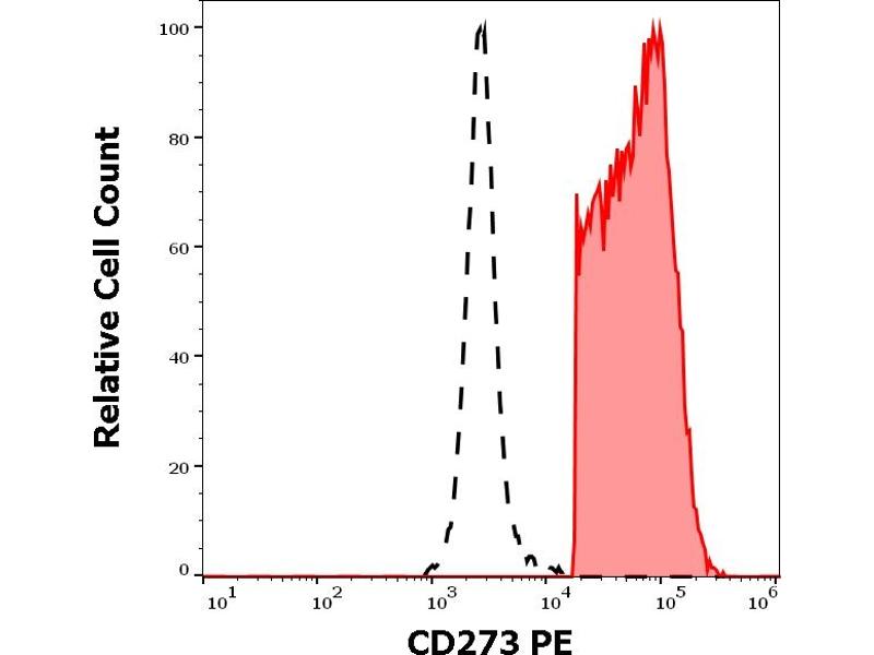 The mouse monoclonal antibody 24F.10C12 recognizes an extracellular epitope of CD273 / PD-L2 (also known as B7-DC), a 25 kDa type I transmembrane protein expressed by dendritic cells, activated monocytes and T cells, heart, first trimester placenta, lung and liver, as well as in Hodgkin´s lymphoma cells and primary mediastinal B cell lymphoma (PMBL).