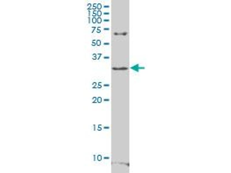 Mouse polyclonal antibody raised against a partial recombinant RFPL4B.