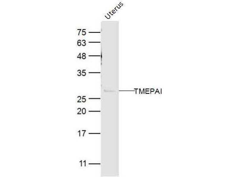 Synonyms: PMEPA_HUMAN, PMEPA1, Prostate transmembrane protein, androgen induced 1, Solid tumor associated 1 protein, Solid tumor-associated 1 protein, STAG1, TMEPAI, Transmembrane prostate androgen induced protein, Transmembrane prostate androgen-induced protein, Transmembrane, prostate androgen induced RNA.