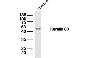 Synonyms: CK 80, CK-80, CK80, Cytokeratin 80, Cytokeratin-80, K 80, K2C80_HUMAN, K80, KB20, Keratin 80, Keratin, Keratin-80, KRT 80, Krt80, type II cytoskeletal 80, Type II keratin, Type-II keratin Kb20.