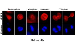The aurora family (A, B and C) are serine threonine kinases and key regulators of chromosome segregation during mitosis. Aurora kinase B is a chromosomal passenger protein that regulates chromosome segregation and cytokinesis. Aurora kinase B is associated with the level of genetic instability within tumours and patient survival. It is strongly expressed in exponentially proliferating bronchial epithelial cells in culture and that this expression is markedly reduced in confluent cells. It is also shown that almost all tumours show higher levels of Aurora kinase B expression than their matched normal lung tissues, which could therefore simply be a consequence of a higher proliferative index, or be typical of the progenitor cell and atypical of the bulk of normal lung cells.Synonyms: AIK2, AIM1, ARK2, AURKB, Aurora- and Ipl1-like midbody-associated protein 1, Aurora-B, Aurora/IPL1-related kinase 2, STK-1, STK12, Serine/threonine-protein kinase 12