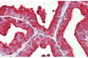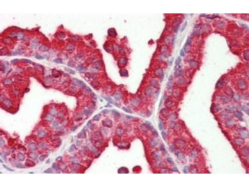 Prostatic acid phosphatase is one of the two antigenic markers of prostatic carcinoma, the other being prostate specific antigen. It belongs to the kallikrein family of serine proteases and is suggested to act as a hydrolase to split phospharyl choline in semen and as a transferase.Synonyms: ACP3, PAP, PSAP, Prostate acid phosphatase