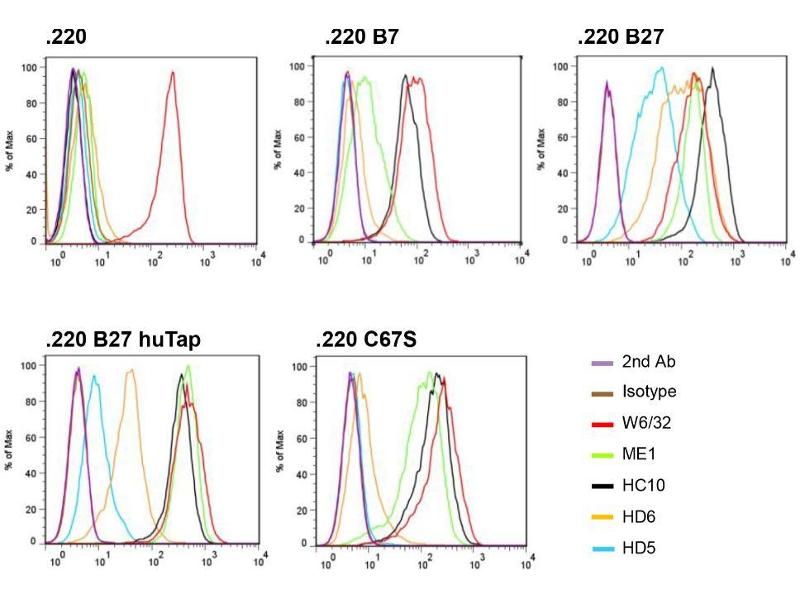 The mouse monoclonal antibody HC10 recognizes HLA class I heavy chains. HC10 reacts mostly with HLA-B and HLA-C heavy chains and some HLA-A (HLA-A10, HLA-A28, HLA-A29, HLA-A30, HLA-A31, HLA-A32, HLA-A33).
