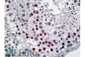Immunohistochemistry: In paraffin embedded Human Testis shows nucleolar staining in spermatocytes. Recommended concentration, 5-10 μg/mL.