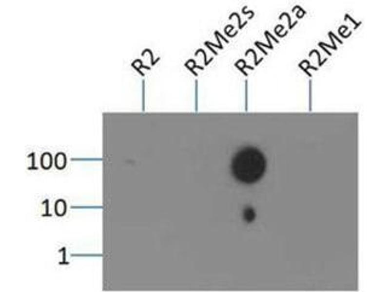 Immunogen: Histone H3 [Asym-dimethyl Arg2] affinity purified antibody was prepared from whole rabbit serum produced by repeated immunizations with a synthetic dimethylated peptide surrounding Arginine 2 of human Histone H3.2.