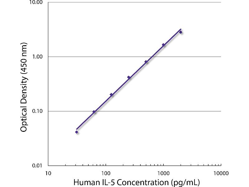 Der Ratte Monoklonal anti-IL-5 Antikörper wird verwendet zum Nachweis von IL-5 in Proben von Human. Er wurde validiert für ELISA, D und ELISA (Capture).