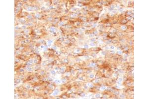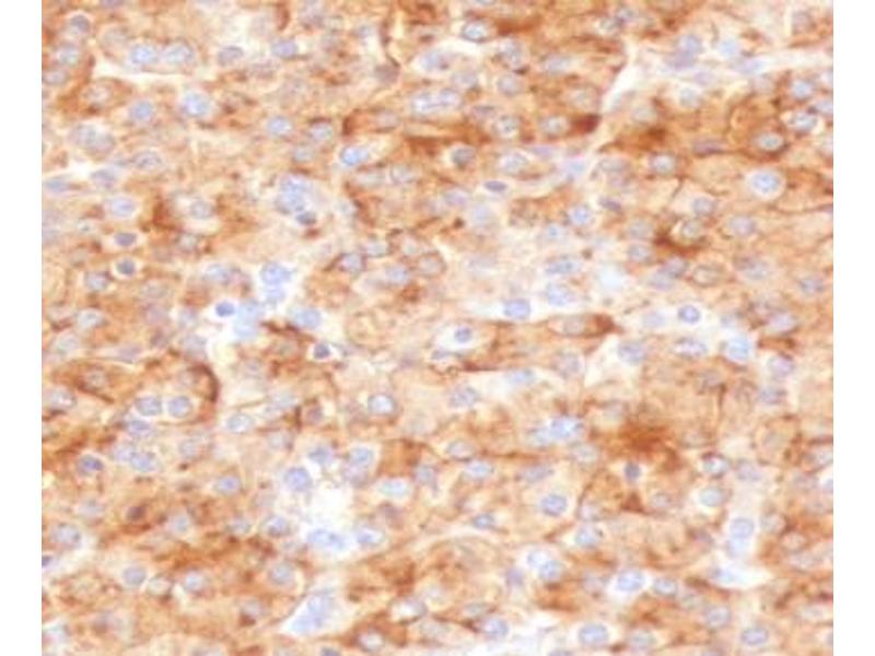1. The prediluted format is supplied in a dropper bottle and is optimized for use in IHC. After epitope retrieval step (if required), drip mAb solution onto the tissue section and incubate at RT for 30 min.\. Immunohistochemistry (FFPE): 0.25-0.5 μg/mL for 30 min at RT,Prediluted IHC only format: incubate for 30 min at RT (1)