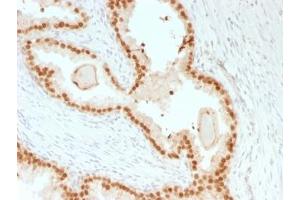 1. The prediluted format is supplied in a dropper bottle and is optimized for use in IHC. After epitope retrieval step (if required), drip mAb solution onto the tissue section and incubate at RT for 30 min.\. Immunohistochemistry (FFPE): 1-2 μg/mL for 30 min at RT,Prediluted IHC only format : incubate for 30 min at RT (1)