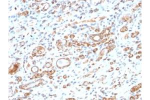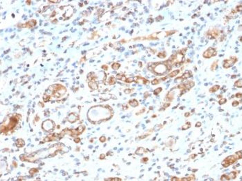 1. The prediluted format is supplied in a dropper bottle and is optimized for use in IHC. After epitope retrieval step (if required), drip mAb solution onto the tissue section and incubate at RT for 30 min.\. Immunohistochemistry (FFPE): 0.5-1 μg/mL for 30 min at RT,Prediluted IHC only format: incubate for 30 min at RT (1) -