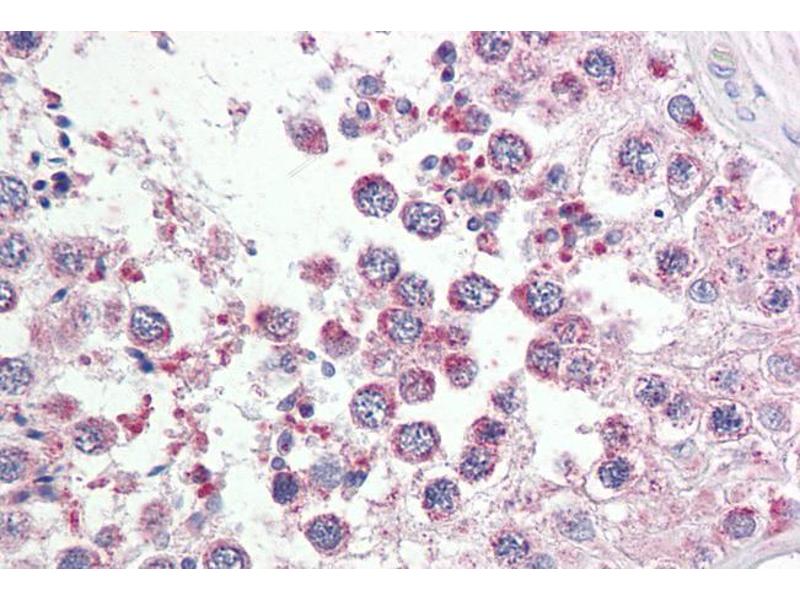 Immunohistochemistry: Paraffin embedded Human Testis. Recommended concentration: 3.75 μg/mL.