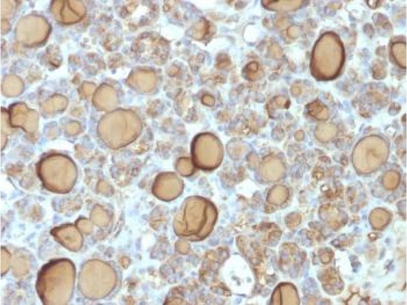 - Human thyroid follicular cells were used as the immunogen for the recombinant TG antibody.