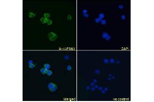 Immunofluorescence: Strong expression of the protein seen in the nuclei of U251 cells. Recommended concentration: 10μg/ml. Strong expression of the protein seen in the cytoplasm of A431 and Jurkat cells. Recommended concentration: 10μg/ml