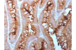 1. The prediluted format is supplied in a dropper bottle and is optimized for use in IHC. After epitope retrieval step (if required), drip mAb solution onto the tissue section and incubate at RT for 30 min.\. Immunohistochemistry (FFPE): 0.5-1 μg/mL for 30 min at RT,Prediluted IHC only format: incubate for 30 min at RT (1)