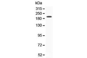 Optimal dilution of the Vegf receptor 2 antibody should be determined by the researcher.\. Western Blot: 0.5-1 μg/mL,IHC (FFPE): 1-2 μg/mL,ELISA (Capture): 0.1-0.5 μg/mL