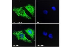 Immunofluorescence: Strong expression of the protein seen in the vesicles of HeLa cells. Recommended concentration: 10μg/ml.