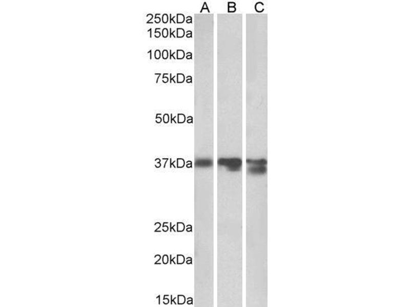 Western Blot: Approx. 37 kDa band observed in Human, Mouse, Rat and Pig Liver lysates (calculated MW of 34.7 kDa according to NP_000036.2). This molecular weight is routinely observed by other sources. Recommended concentration: 0.01-0.03 μg/mL. Primary in