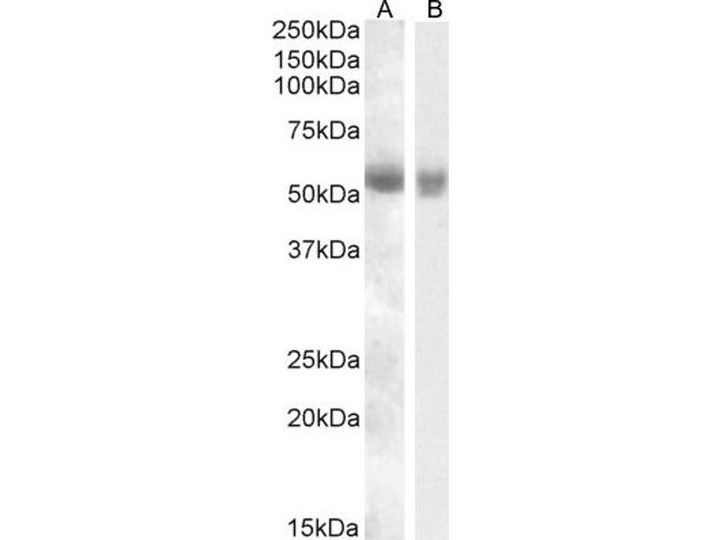 Western Blot: Approx 55-60 kDa band observed in Human Pancreas and Kidney lysates (calculated MW of 53.9 kDa according to NP_005647.2). This molecular weight is routinely observed by other sources. Recommended concentration: 0.1-0.5 μg/mL. Primary incubati