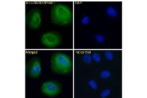 Immunofluorescence: Strong expression of the protein seen in the cytoplasm and Golgi apparatus of A431 and U2OS cells. Recommended concentration: 10μg/ml.