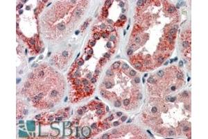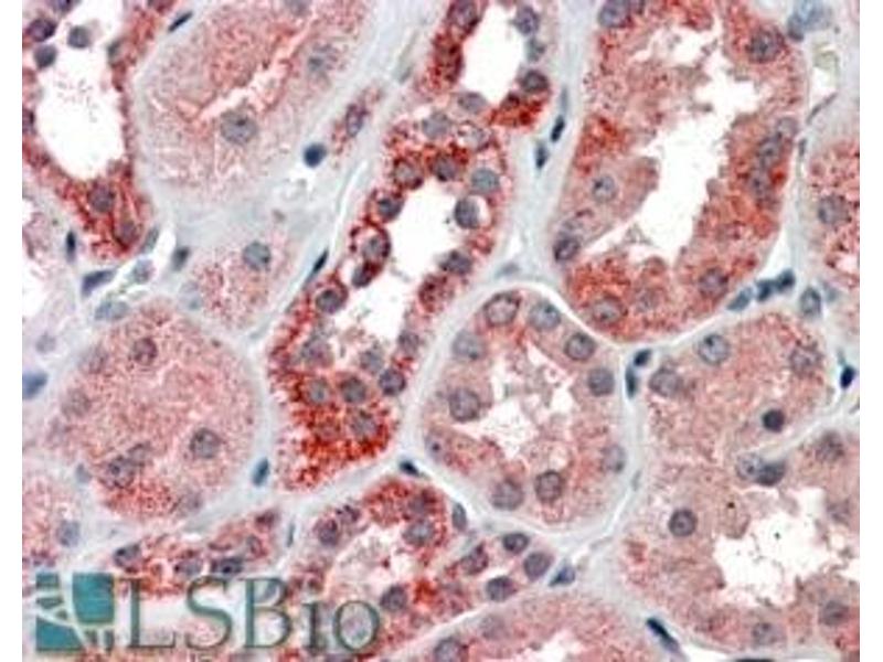 Immunohistochemistry: In paraffin embedded Human Kidney shows preferential staining in the cytoplasm of DCT. Recommended concentration, 3-6 μg/mL.